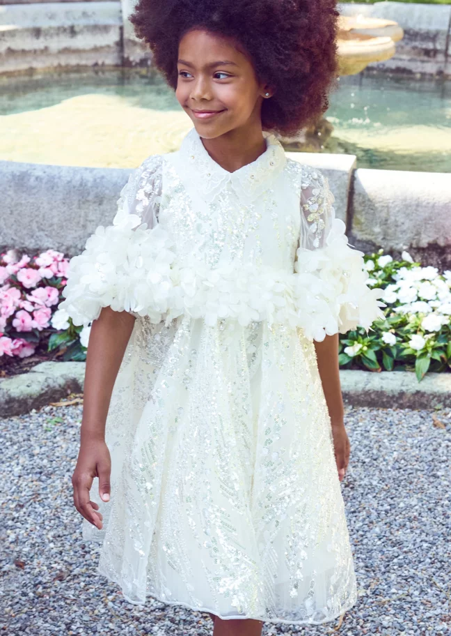 لا شيء يضاهي فستان الحفلات المرصّع بالترتر لإضفاء لمسة من التألق على حلبة الرقص. وللحصول على لمسات براقة ورقيقة، اختاروا لها فستان Coeur by Childrensalon المزين بترتر على شكل فراشات. أما إذا كانت صغيرتكم تفضل الفساتين المغطاة بالترتر اللامع والبراق، فاختاروا لها فساتين غراتسي وجونونا وإيريني المزينة بطبقات من الترتر لمنحها إطلالة تخطف أنظار الجميع.