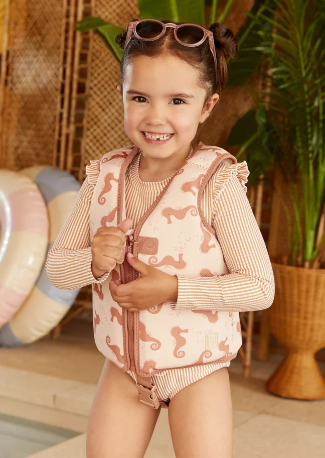 يعد حوض السباحة الوجهة المثالية للأطفال في الأيام الحارة، وهناك طرق عديدة لجعل تجربة الذهاب إلى حوض السباحة أكثر متعة وأمانا للصغار وأقل إزعاجا للآباء والأمهات. وفي تشلدرن صالون، لدينا تشكيلة من بدلات وسترات الطفو للصغار الذين يتعلمون السباحة لتكون رفيقهم في المياه غير العميقة. كل تصميم مزود بعوامات موزعة بالتساوي للحفاظ على توازن الطفل في المياه، وبعض التصاميم مصنوعة من خامات بعامل حماية +UPF50. وإذا كنتم تفضلون بدلات السباحة بدون عوامات، بإمكانكم إضافة سترة الطفو لارتدائها فوق بدلة السباحة. ولكن يجدر ملاحظة أن بدلات وسترات الطفو تساعد الطفل على السباحة وتعزز ثقته فقط، ولا يمكن استخدامها كسترة نجاة أو وسيلة إنقاذ، وأن الأطفال يجب مراقبتهم طوال الوقت سواء في المياه أو بالقرب منها.