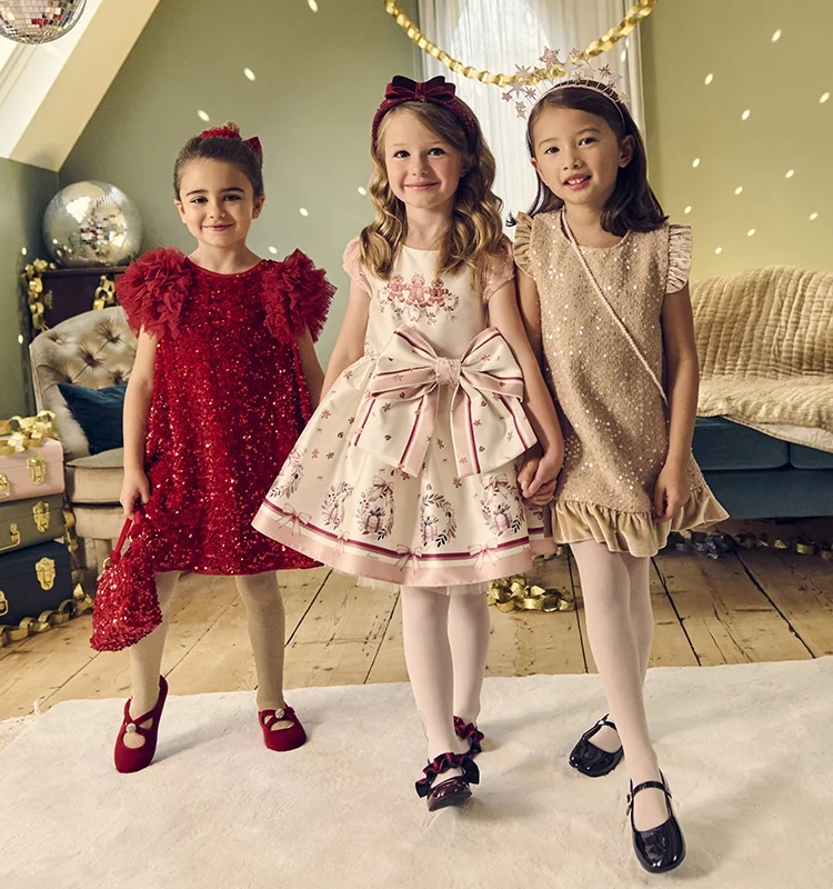 Discover an array of kids' party dresses and suits, elevated for the occasion with opulent metallics and brocades, velvet with its beautifully soft sheen, and sequins. Lots and lots of sequins. New Year’s Eve wouldn’t be New Year’s Eve without a little sparkle, after all! 2026, here we come!
