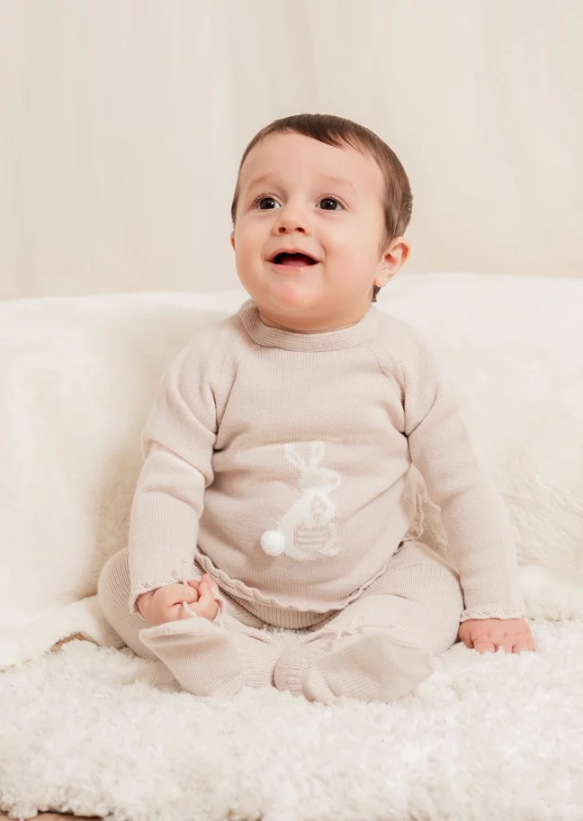 Babidu-طقم معطف وبنطلون محبوك لون كحلي للأولاد الرضع | ChildrensalonBabidu