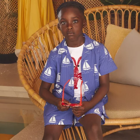 ولأننا نهتم بتجهيز كل ما يحتاجه الطفل للاستمتاع بالرحلات الصيفية، سواء إلى المدن أو الشواطئ الاستوائية أو حتى المغامرات اليومية، ستجدون لدينا إطلالات تناسب كل الوجهات السياحية التي قد تخطر على بالكم. نقدم لكم ملابس السباحة الواقية من الشمس والصنادل المريحة والقطع المنفردة القطنية الرائعة، بالإضافة إلى بعض الإطلالات المميزة للمطاعم والنوادي في المساء.