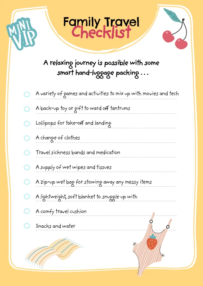 When it comes to dressing kids for the journey, it goes without saying that comfort is the most important factor — itchy labels, tight waistbands, hems that chafe, and restrictive fabrics make for a very grumpy holidaymaker. We recommend layers for fluctuating temperatures in soft, breathable cotton: a tracksuit over a tee is always a winner for long journeys. A spare set of clothes and something to mop up any spills are always a good idea too!