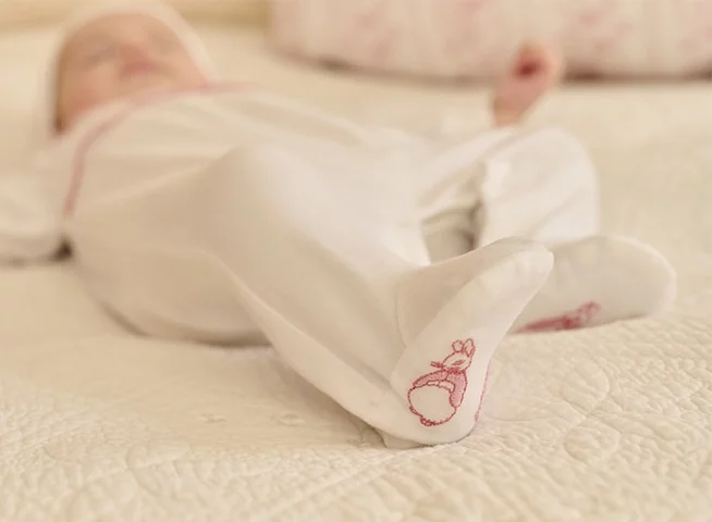 في الأسابيع الأولى، سينام الصغير كثيرا سواء خلال النهار أو ليلا، لذا يجب مراعاة راحته. اختاروا أقمشة طبيعية تكون خفيفة الوزن ومسامية وناعمة على بشرة الطفل الرقيقة، مثل القطن العضوي والكتان والصوف