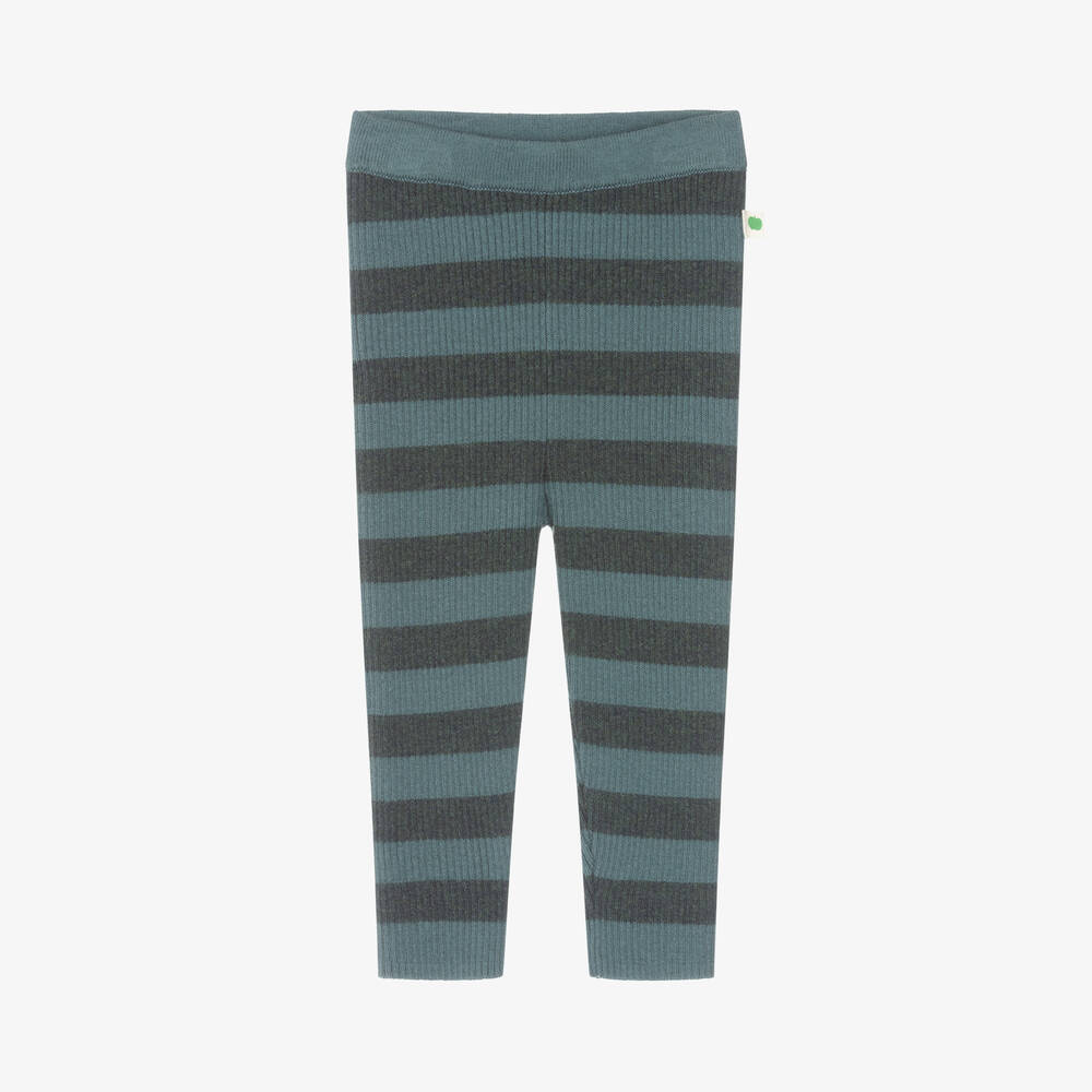 Cosy and comfortable for baby boys and girls, these green striped leggings are from British Brand, the bonniemob. They are knitted in a beautifully soft organic cotton and cashmere blend with a ribbed pattern and have a gently elasticated waistband. The designer's signature apple logo tab is stitched on the hip for a subtle branded touch.