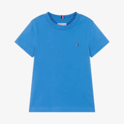 Bright blue T-shirt for boys by Tommy Hilfiger, made in soft cotton jersey. Featuring a crew neckline and embroidered flag logo, this comfortable top has an easy, everyday feel.