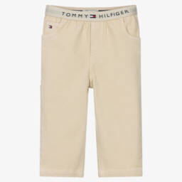 Ivory wide-leg jeans for girls by Tommy Hilfiger, made in soft cotton needlecord. Casual and comfortable, they have classic five pocket styling, a useful adjustable waist for a great fit and a branded popper and zip fastening. For a signature finish, the brand's iconic flag logos are embroidered on the front and back pockets.