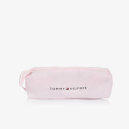 Baby girls pink cotton jersey shorts set by Tommy Hilfiger, with distinctive flag logo embroidery and signature striped detailing. The T-shirt has a bold white logo printed on the front and poppers on one shoulder to help with dressing. The matching shorts have side seam pockets and a drawstring waist for a comfortable fit on little tummies.