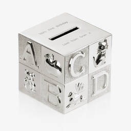 Fun silver money box for little boys and girls by Treat Republic, great as a gift. Designed in the shape of a football, it is lovely as a decoration for their bedroom. Their name can be engraved on the top for a personalised touch. Coins can be inserted into the top and removed with the stopper underneath.