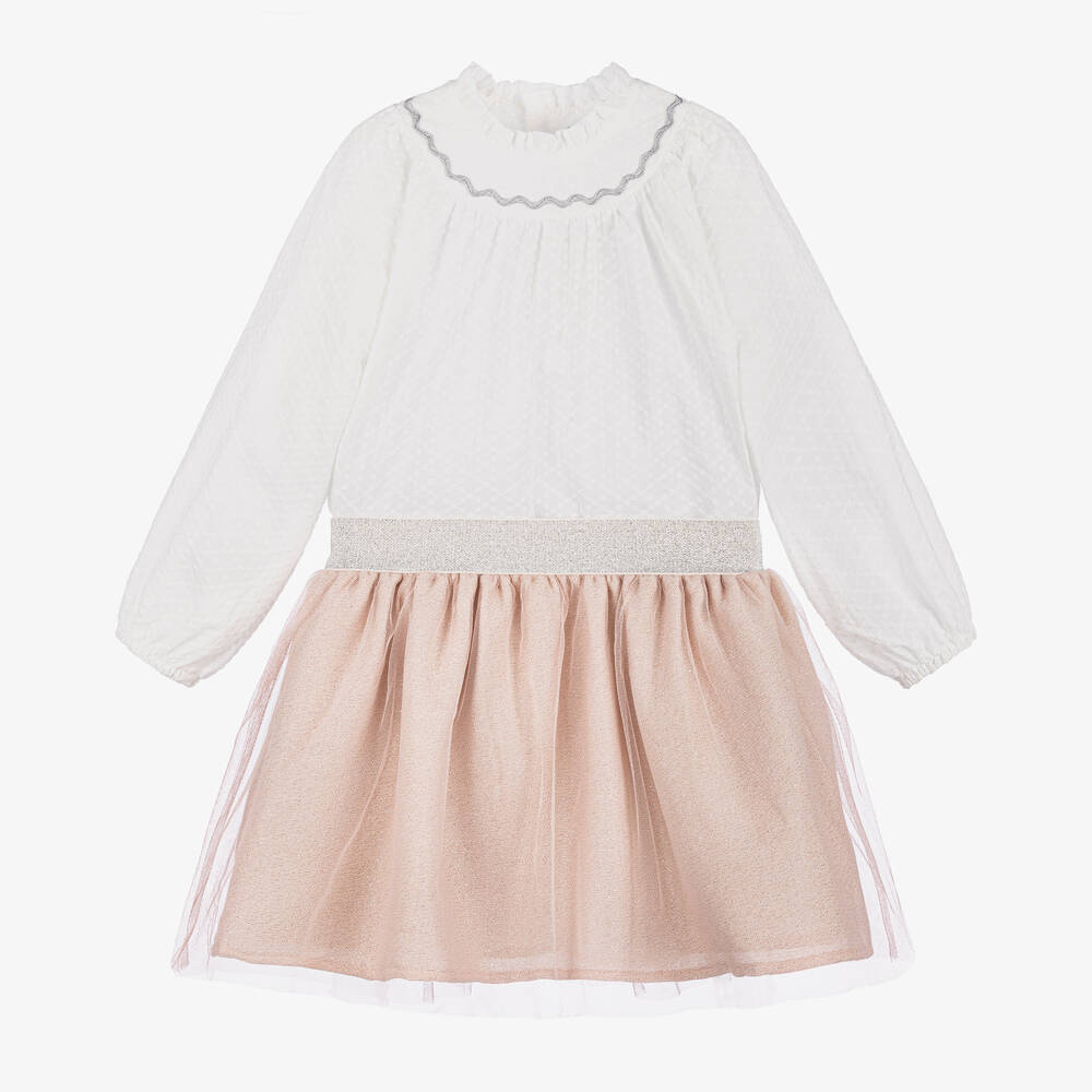 طقم تنورة تول لون أبيض وزهري