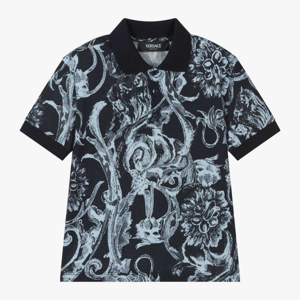 توب بولو قطن لون كحلي بطبعة باروك للأولاد