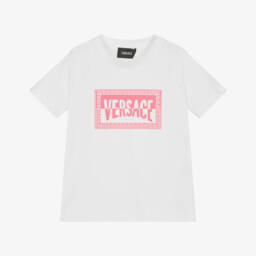 تيشيرت قطن لون أزرق فاتح للأولاد الصغار من الماركة الإيطالية الفاخرة فيرساتشي، مصنوع من قطن جيرسي ناعم. يتميز بتصميم كاجوال مع ياقة دائرية كلاسيكية، ويزدان بشعار الماركة المميز مطبوعًا باللون الأبيض على الجهة الأمامية.