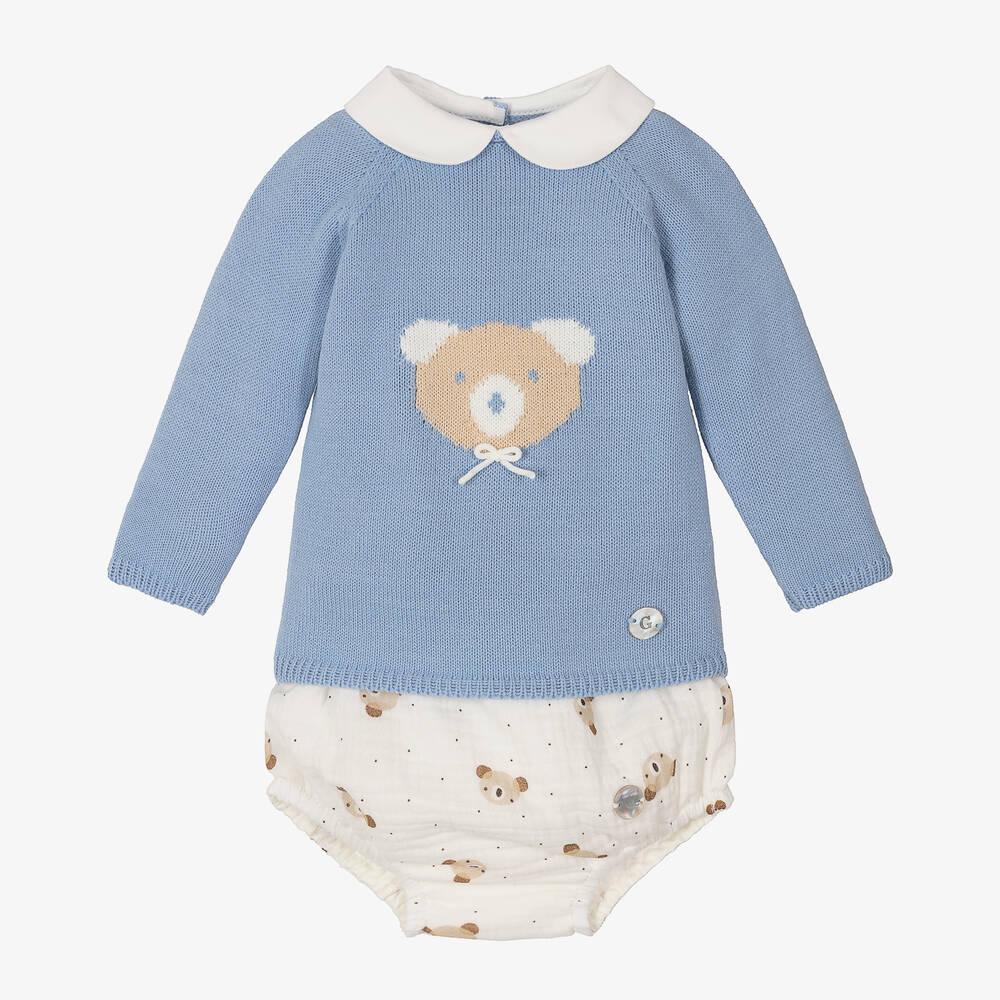 Baby Boys Blue Teddy Bear Knit Shorts Set