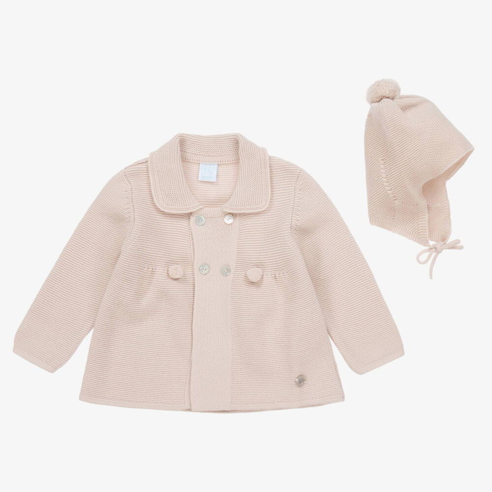 Beige Knitted Baby Coat & Hat Set