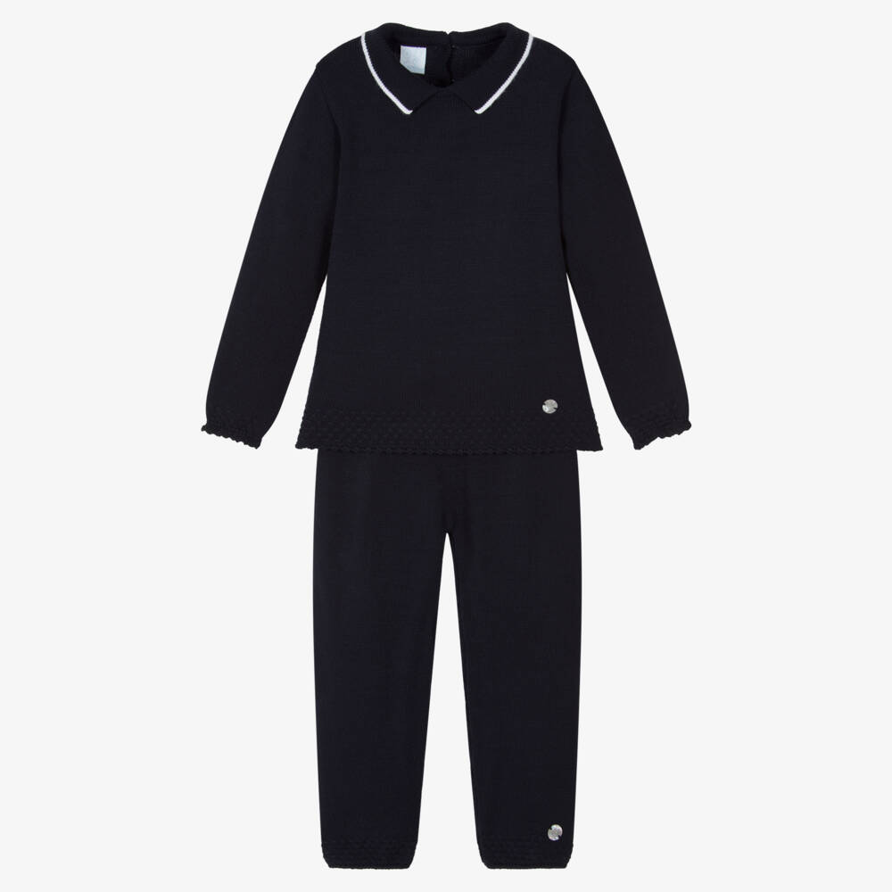 Boys Navy Blue Knitted Trouser Set