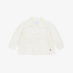 Sweet pink bolero cardigan for little girls by Spanish brand Artesanía Granlei, knitted in a soft cotton blend. A useful layering piece, it has pretty lacy knit trims and scalloped edges. It fastens with a single internal button on the front.