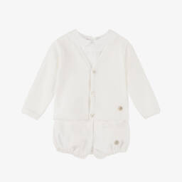 Pretty white headband for girls by Artesanía Granlei. This beautiful accessory features delicate, glittery chiffon flower appliqués on a soft and stretchy knitted headband, completing her outfit with a charming finish.