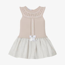 A lovely pale blue bonnet for baby boys and girls by Artesanía Granlei, exclusive to Childrensalon. It is softly knitted with a pretty circular pattern at the back. A logo disc on the side adds a designer touch and the bonnet fastens with ties under the chin for a secure fit.