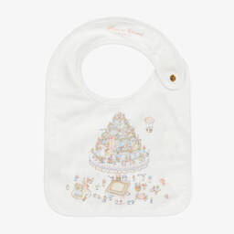 A delightful ivory bib for baby boys and girls by Atelier Choux Paris, made from soft and lightweight organic cotton. Effortless for mealtime, this bib has a charming table setting illustrated on both sides for a classically styled look. Gold-tone poppers fasten on the neck and adjust to create a neat fit.