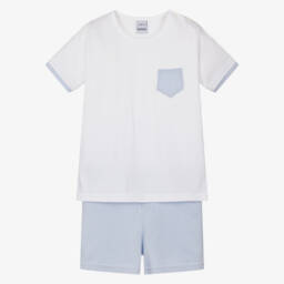 A smart red velvet shorts set for baby girls by Babidu, ideal for parties or special occasions. The white, cotton twill blouse has delicate red smocking around the frilled neckline, with a pretty bow on one side and gently elasticated cuffs. The coordinating, super soft, velvet shorts have a ruffle all around the elasticated waistband and an easy, pull-up style.