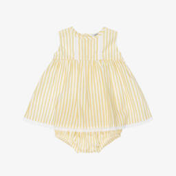 A lovely grey dress for girls by Babidu, made in softly woven cotton. This charming, classic look has a square neckline, delicate white lace trim and pretty ruffles over the shoulders. Lined with voile for comfort, the dress is elasticated across the back and a charming white muslin bow adds a pretty finish.