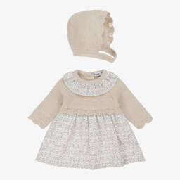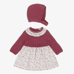 A charming pink dress set for girls by Babidu, ideal for warmer days. Made in plumeti muslin for a beautifully soft feel, the pinafore style dress has button-fastening shoulder straps and a gently elasticated waist. The lovely floral blouse has a lace-trimmed neckline and pretty puffed sleeves. It fastens neatly on the back with traditional wooden buttons.