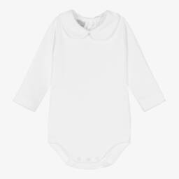 White wrapover bodyvest for baby boys and girls by Babidu, made in beautifully soft cotton jersey. There are poppers at the front and between the legs for easy dressing and changing.