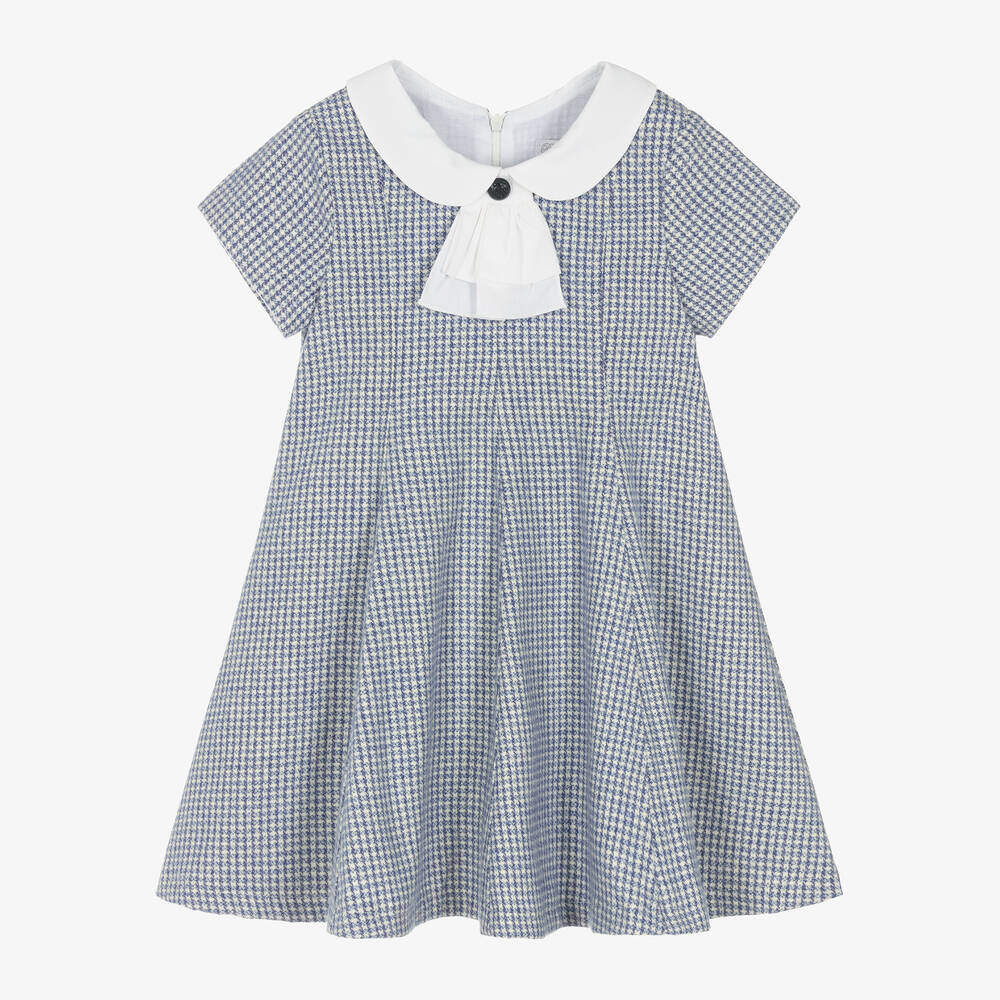 Girls Blue Checked Cotton Dress