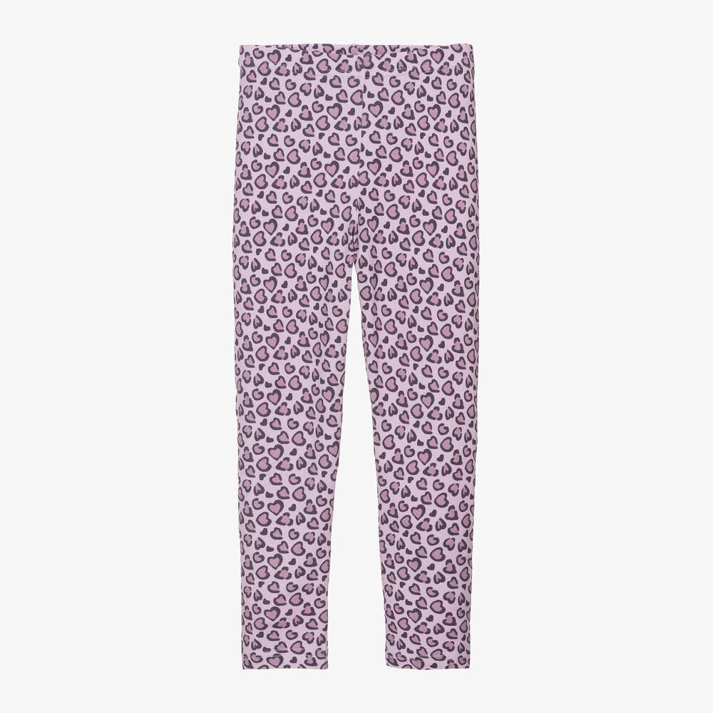 Lovely pink leggings for girls by Balloon Chic, with a leopard-effect heart pattern. Made in soft and stretchy cotton jersey, these full-length leggings have a comfortable elasticated waistband.