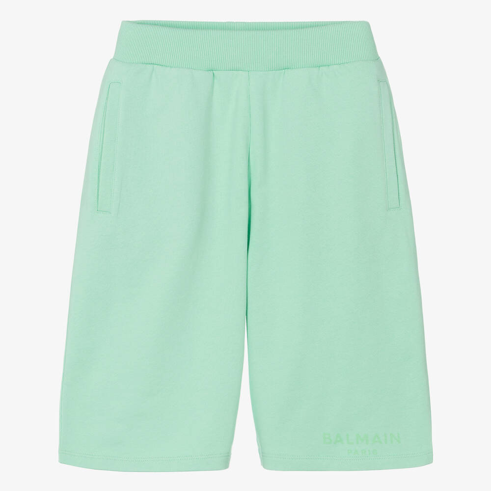 Great for a casual style, these light green shorts for teen boys are by Balmain. Subtly branded, they have a tonal logo printed on one side for an understated look. Made from soft mid-weight cotton jersey, they have practical front pockets and a comfortable ribbed elasticated waistband.