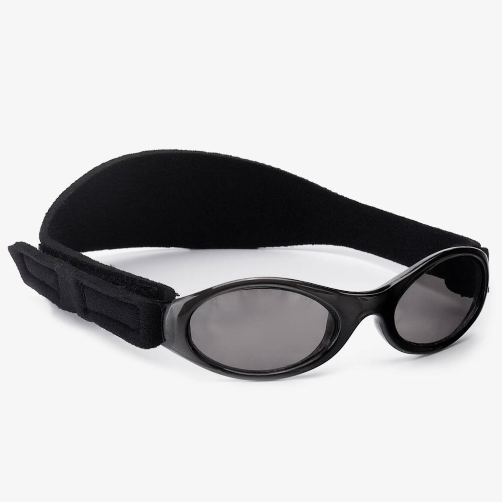 Banz sunglasses, in black, for little boys and girls. They have category three lenses which offer high sun glare reduction and ultimate UV protection. On the underside is a protective nose and brow piece made from soft silicone for comfort. The adjustable, elasticated strap fits around the head and fastens with a velcro strip.