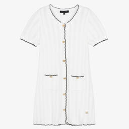 Girls sumptuous beige satin dress by BCBGMAXAZRIA, with statement puffball sleeves embellished in shimmering gold sequins for a luxe feel. Mid-weight, and holding it's shape beautifully, this elegant dress has an exposed black zip fastening around the back with grosgrain bow detailing and a shiny gold logo charm pull tab. It is lined in lightweight voile for comfort.
