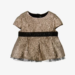 A chic off-white top for older girls by BCBGMAXAZRIA, made in soft satin with a slight sheen. Designed to sit on the waist, it has a bow detail on the neckline with a golden BCBG coin charm. It has a concealed side zip and a neat keyhole button fastening on the back of the neck.