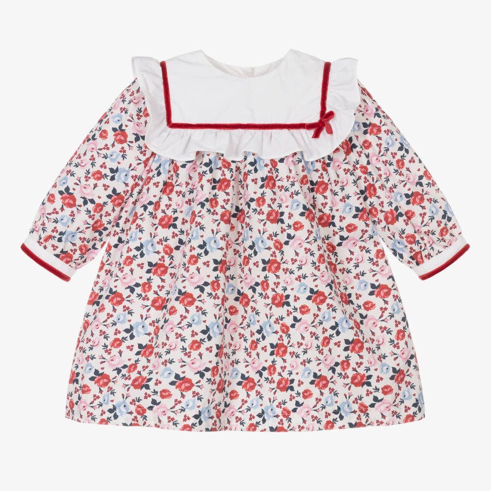 Baby Girls Ivory & Red Cotton Floral Dress