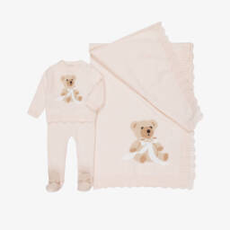 Blue Knitted Wool & Cashmere Babygrow Set