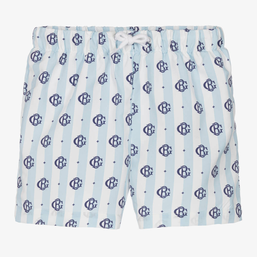 Boys Blue Stripe Monogram Swim Shorts