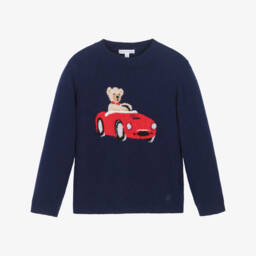 Beautifully soft pale beige sweater for boys by traditional brand Beatrice & George, knitted in a Merino wool and cashmere blend. Exclusive to Childrensalon, it has a flying bear intarsia on the front in red.