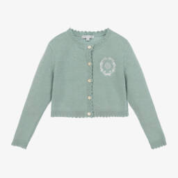 Lovely pink long-sleeved bolero cardigan for girls from classic British brand Beatrice & George, exclusive to Childrensalon. Knitted in beautifully soft cotton for comfort, this timeless style is shaped at the front with a single button fastening and a pretty scalloped trim.