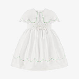 Girls White Smocked Cotton Dress with Floral Embroidery