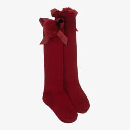 Black knee-length socks for girls by Beau KiD, made in a soft and stretchy knit. A charming finishing touch to any outfit, they have a grosgrain ribbon bow and a pom-pom on the side.