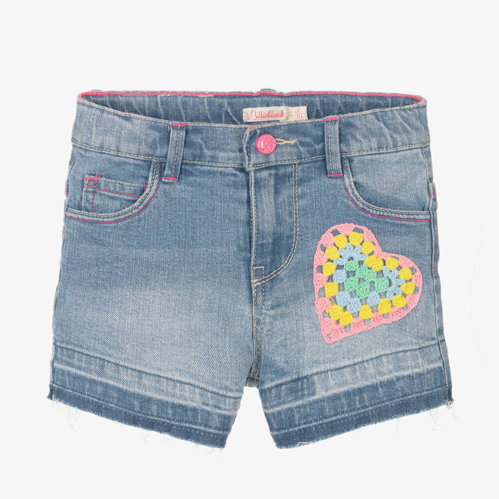 Girls Blue Crochet Heart Denim Shorts