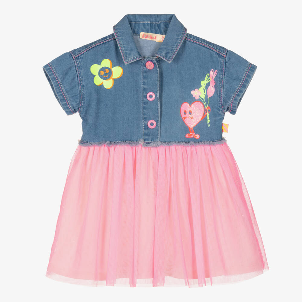 Girls Blue & Pink Denim Tulle Dress