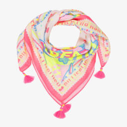 In shades of pink, blue and white, this gorgeous chunky knit scarf for girls is by Billieblush. A fun and colourful accessory in her winter wardrobe, it is trimmed with a big fluffy pink pom-pom at either end.