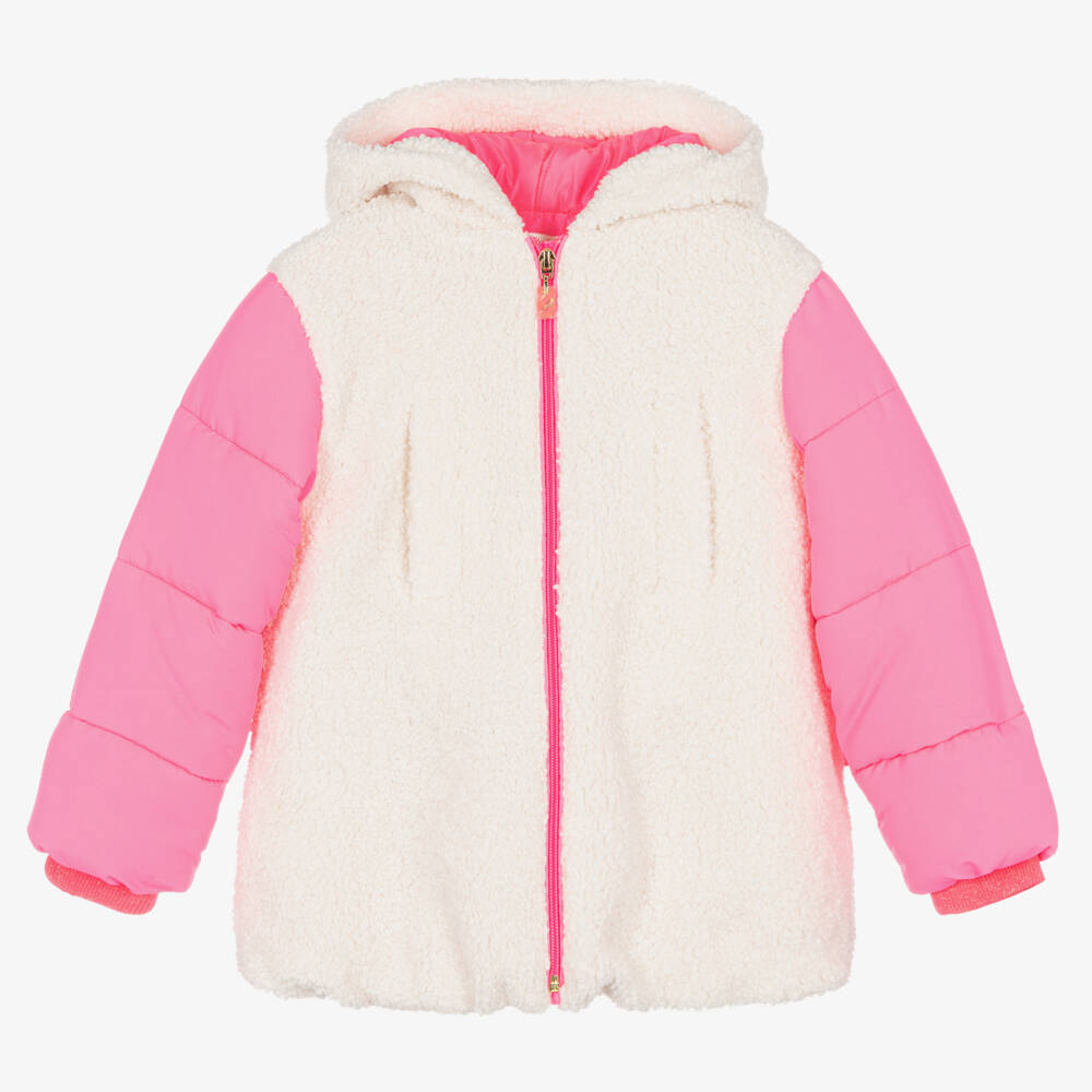 Girls Ivory & Pink Sherpa Fleece Jacket