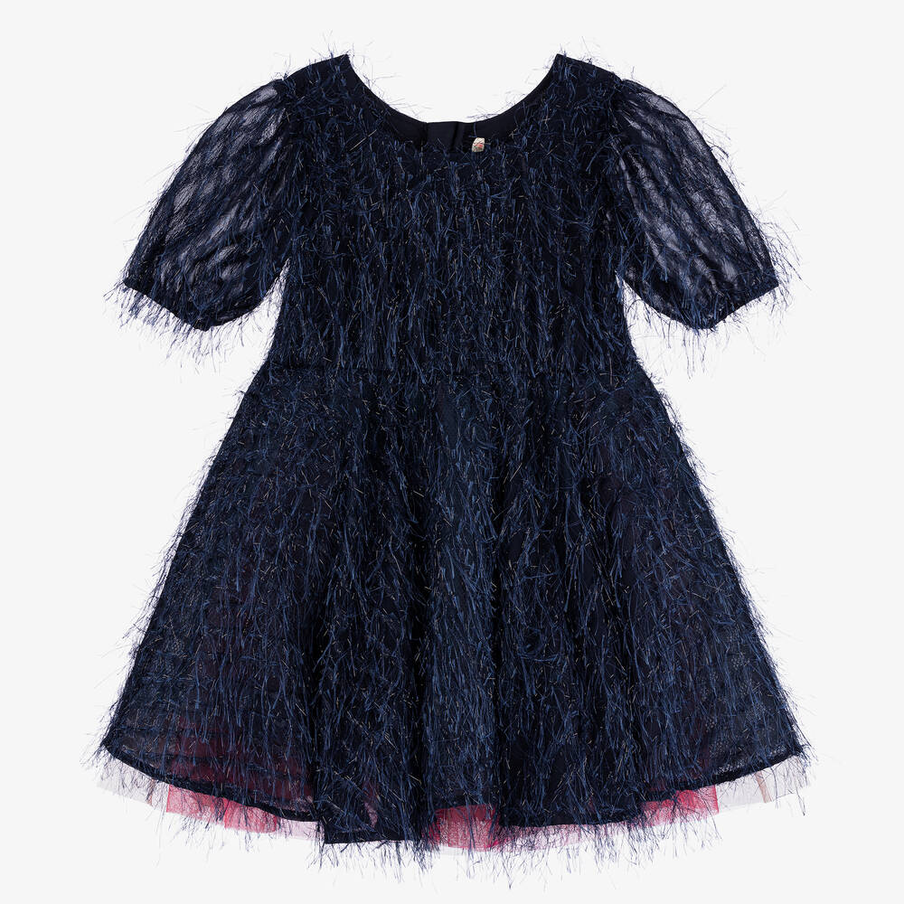 Girls Navy Blue Fluffy Chiffon Dress