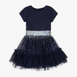 Navy blue boots for girls by Billieblush, with a cool, glittery finish. These stylish boots are made in shiny faux leather with a neon pink logo on one side. They have a bright neon pink lining and leather insoles. They fasten with a zip on one side and there is an elasticated panel on the other side for a comfortable fit. They have chunky rubber outer soles with deep treads providing a good grip.