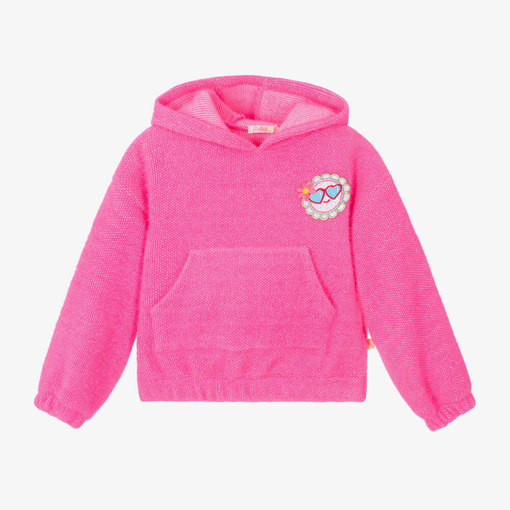 Super soft and fluffy, this neon pink hoodie for girls is by Billieblush. Made in a mid-gauge knit, it has an embroidered, glittery flower badge on the front, a central pouch pocket and a logo tab on one side seam. The cuffs of the long sleeves and the hemline are elasticated for extra cosiness.