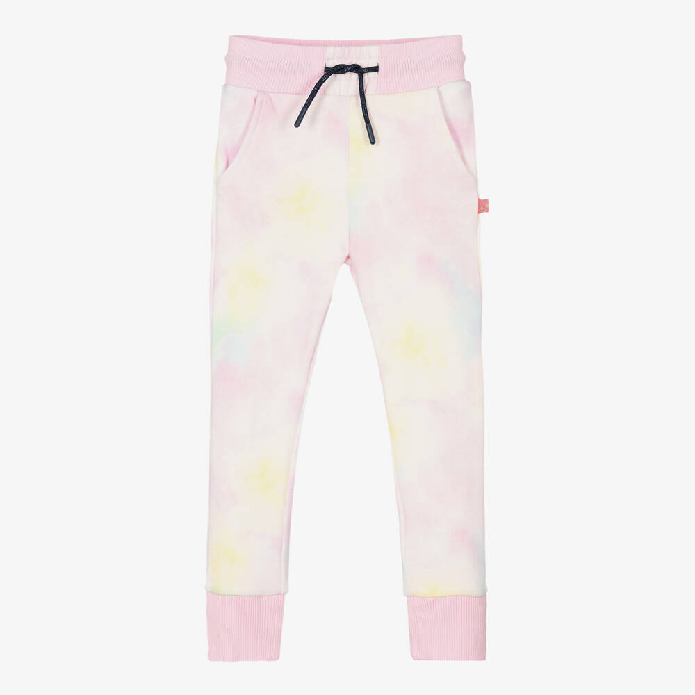 In pretty pastel shades of pink, blue and yellow, these fun joggers for girls are by Billieblush. They are made in soft and comfy cotton jersey, with sparkly pink ribbed trims. There are useful pockets on the front, and the elasticated waistband has a navy blue glittery drawstring tie.