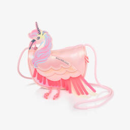 Bright neon pink shoulder bag for girls by Billieblush, made in soft coated fabric. The main compartment has a silky smooth lining and fastens with a zip. There is a colourful bird appliqué on the front with yellow, orange and blue fringing. It has a fixed shoulder strap, made from pastel coloured beads for a fun finish.
