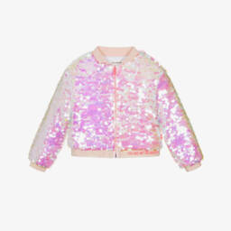 This gorgeous pink party dress for girls by Billieblush, is an eye-catching choice for a special occasion. Made in soft and stretchy mesh, it is covered in iridescent sequins that shimmer and shine as they catch the light. It has satin trims around the neck and armholes and a glittery elasticated waistband. It has a lightweight lining for comfort and fastens with a concealed zip on the side and a single button on the back.