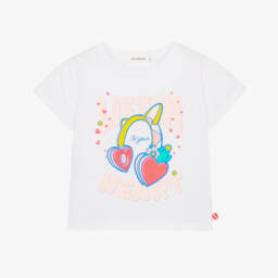 White T-shirt for girls by Billieblush, made in soft cotton jersey. This eye-catching design has a playful pink character on the front in colourful, sparkly sequins.